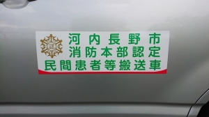 お客様に安心してご利用いただくために、大阪南消防局より「民間患者等搬送事業者」の認定を受けています。